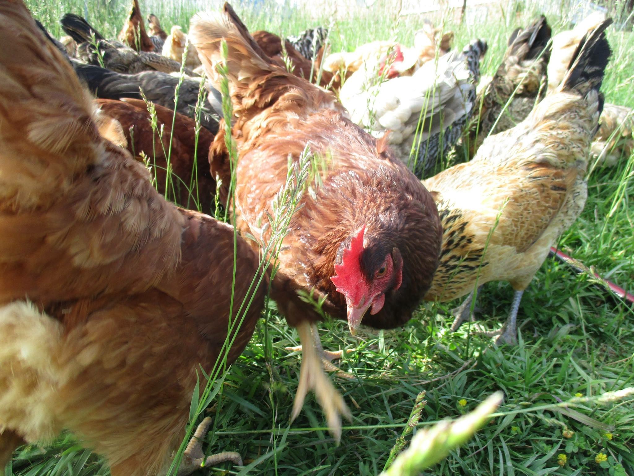 Chickens are inquisitive animals with a complex social hierarchy. Chickens need to chase bugs and scratch the earth. Chickens need to be outside… live like they were designed to live. Our chickens eat organic chicken feed to make sure they are getting all the nutrition they need, but they also eat as much fresh grass, insects, and worms as they desire. The feed we use is produced by New Country Organics in Waynesboro, Virginia (please see our other post on broiler chickens for more information about the feed that we use).