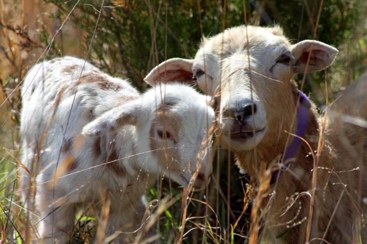 Grassy hills during a Tennessee summer at the Bauernhof.One of our ewes with her newly delivered lamb.